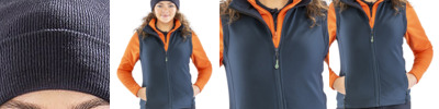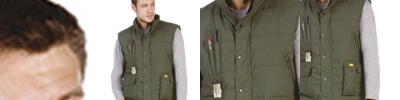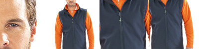 Multifunctional bodywarmer. Front covered full-zip with press-stud fastenings. 1 inner wallet pocket and 4 outer pockets (including 2 with zips). 2 extra outer pencil pockets. Adjustable wind-stoppers in the armholes with elasticated cord and stoppers. Open hem and 'low back'.