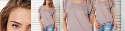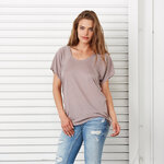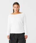 Tri-blend off the shoulder sponge fleece with wide neck and wide rib cuffs/waistband. Laundered.