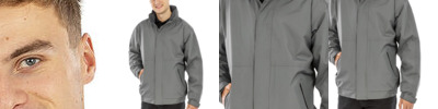 55% polyester 45% cotton brushed back fabric. Grown-on hood with adjusters. Half-length centre front zip with concealed neck and face protector. 2 zipped lower pockets. Ribbed cuffs and hem.