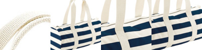 Printed stripe design. Zippered closure. Webbing carry handles.